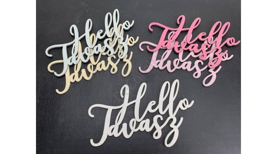Fa "Hello Tavasz" írott felirat koszorúra 12x19 cm - krém