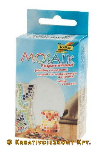 20 x 20 cm területre elegendő a mennyiség. A port vízzel össze kell keverni, így egy kenhető massza képződik. A mozaikfugákat ezzel a masszával le kell zárni. A mozaik fugázót acryl festékkel lehet keverni és így különleges színűvé tenni. Leírás német nyelven.