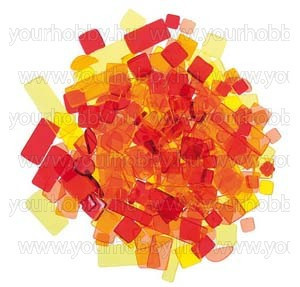 Akril mozaiklapokKiszerelés: 100 g, kb. 440 dbMéret: 6-30x2 mmSzín: sárga-piros mix